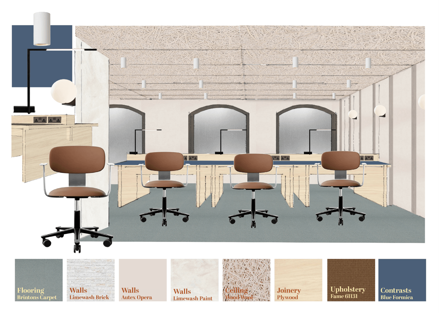 New interventions are introduced with respect for the existing fabric, allowing the raw architectural character to take precedence. The client’s branding is woven into the scheme through subtle, considered details, transforming the offices into a workspace that reflects and showcases the identity of the business.